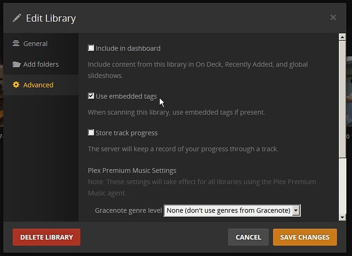 One (hopefully temporary) note: With the recent overhaul of the Plex Music scanner, even though it provides better support for embedded tags, it also has become pickier about your folder structure. So it is very important that your folder and file naming conforms to Plex’s guidelines.
