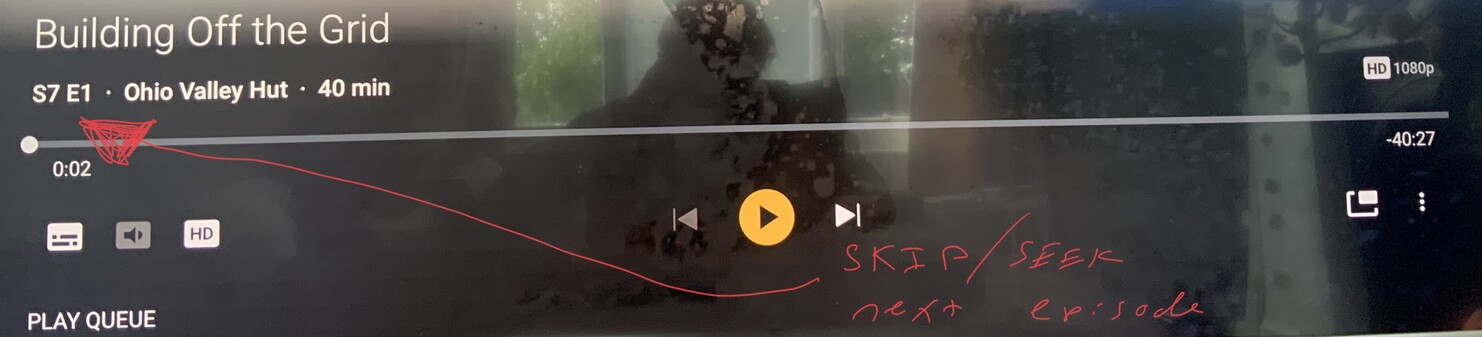 Apple TV showing no controls, no UI conventions, etc neither on screen or in sub menus. Maybe I just don’t understand the Apple TV UI conventions in this area. Do you really have to go back to the main series season page then select the episode each and every time?