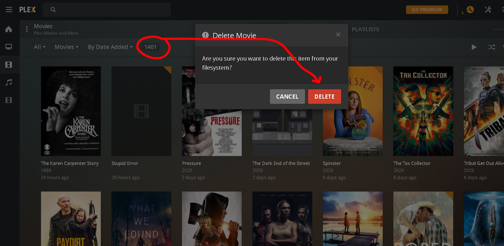 I think you’re on to something. That’s EXACTLY what happened. I already had a movie (on one drive… D:) and didn’t realize. I put it on Drive E: and then ran the scan. I had the movies sorted by Date Added and couldn’t figure out why it wasn’t showing up as the latest movie. That’s when I checked and found the identical movie on Drive D:. Instead of deleting one of the files, I moved one of them out of the library folder and used Plex to delete the other. When I put the one I moved back into the Library folder and rescanned it added it as a new movie, but didn’t delete the old post. I renamed the old post as STUPID ERROR and tried to delete it. That’s where it’s at right now. Won’t delete.