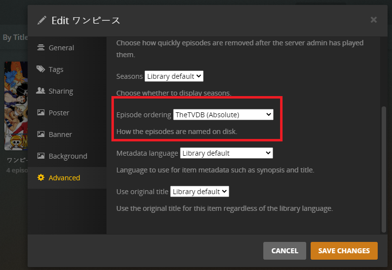 I recently started changing my animes to absolute order. I don’t know why, but somehow PleX doesn’t manage to match the episode names right for the series “One Piece”. I tried some things out. Before, some episode names were assigned, but there were huge gaps over wide numbers of episodes with the only pattern that there were many episodes in a row unassigned. At least the specials were assigned correctly. Now, not even one episode or special is assigned a name anymore, although the series is matched correctly.