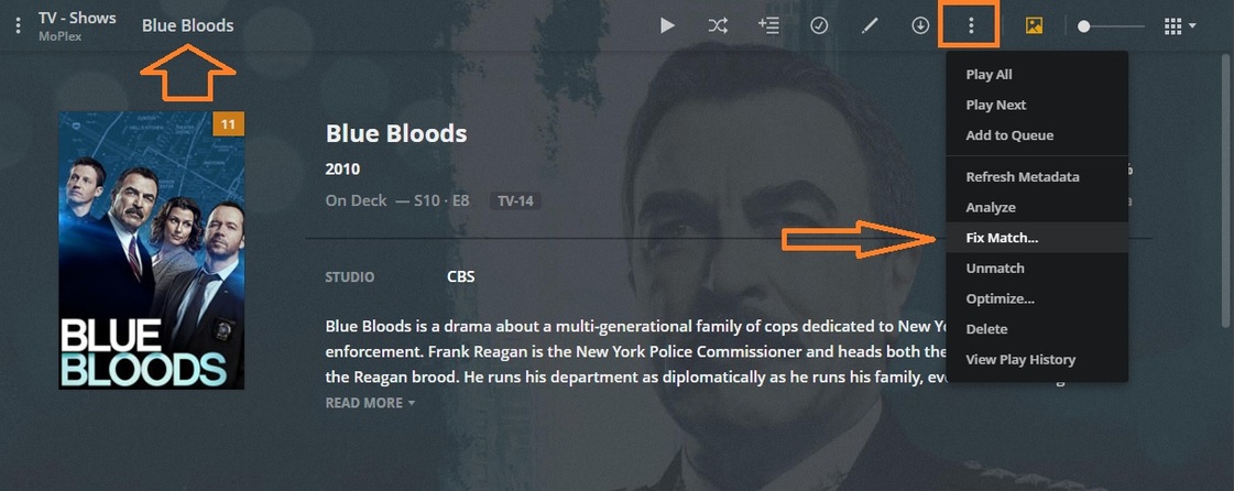 As for Fix Match/Personal Media - Start from The Show’s home page, not season or episode view - then follow along: