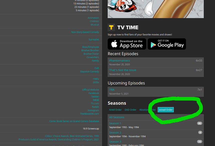 However, there is the “Joined Order” sort option (under the “Seasons” heading on the right pane of a show’s home page) that is often times correct for shows that they have decided to split into multiple episodes due to the segmented nature, regardless of them being aired at the same time.