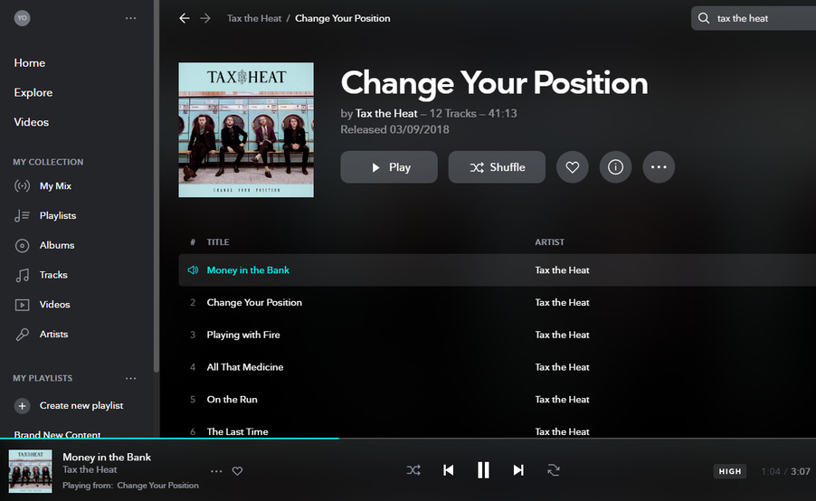 From Tidal proper, artist “Tax The Heat”, album “Change Your Position”: