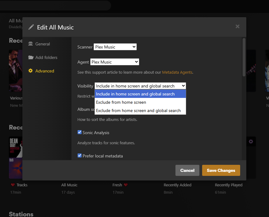 Just the visibility box. I discovered that Alexa requires the “Visible in global search” option to be able to find and play our music. Playlists are probably shuffled under a kind of separate library called “playlists” that might have global access regardless of the library’s own “visibility”.