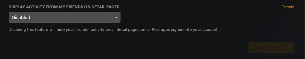 I have all the social features disabled but the Plex apps still show “Activity by you” and activity by my friends under each media item. This seems to be new - maybe in the last couple of months. Seems like a major bug to me.