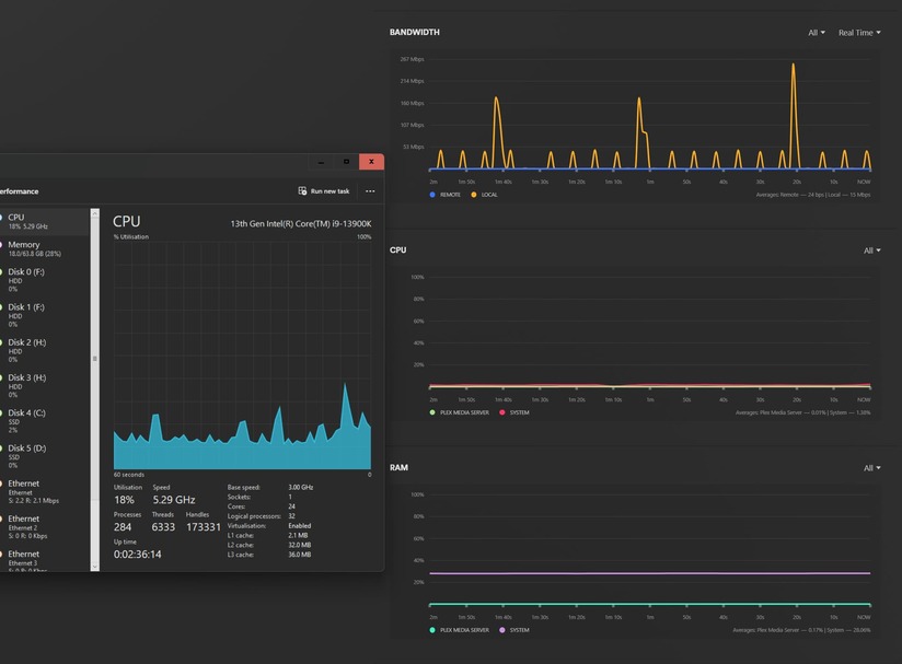 Running same PMS version (1.40.1.8173) on similar hardware (Dual Xeon E5 2620s 64GB RAM Supermicro box) with Windows 10 Pro. I am not seeing your reported behavior.