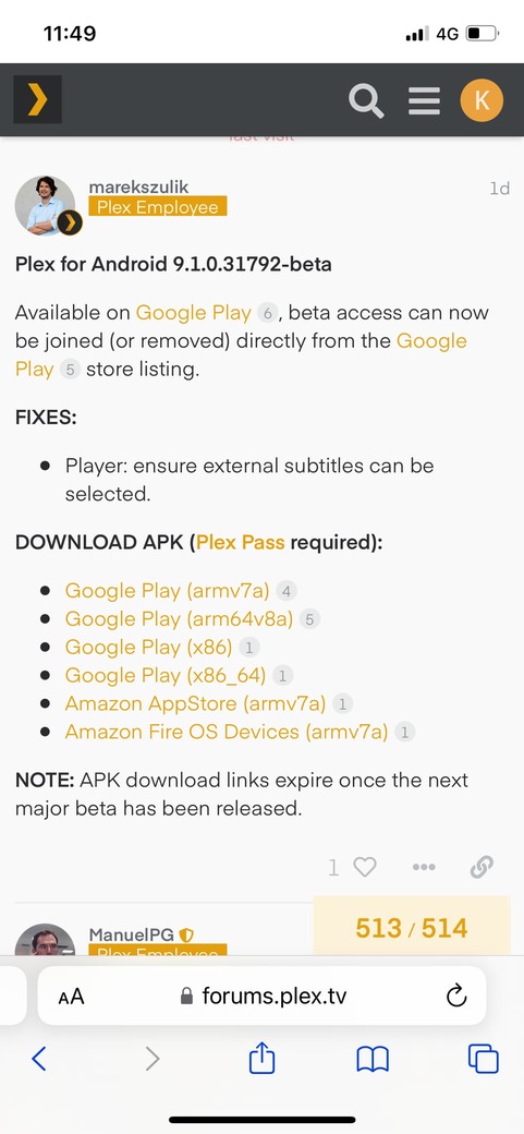 When I start watching a movie show or whatever and I select my external dutch.srt it will always take the English one. I do not have this issue on my browser with plex. I fixed it for now by enabling burn in but let’s just say energy prices are not cheap and I don’t need my closet heated by unnecessary transcoding please note and fix this issue.