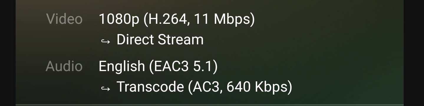 Here’s one example that to me makes no sense. Audio is EAC3 5.1 get my Plex Server is transcoding it to AC3 Stereo. Why wouldn’t it transcode it to AC3 5.1. Then I thought about the Roku settings Audio being set to Dolby Digital, DTS. So I switched it back to Auto thinking that it would then allow Dolby Digital Plus to play if it was available. But nope, still transcoding EAC3 5.1 to AC3 Stereo.