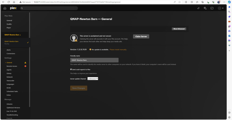 i just updated my network (from BT to Orbi), and pretty much everything is working great - apart from plex.