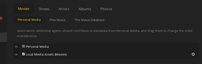 - I unchecked Local Media Assets and moved that at the bottom for TMDB and Plex.