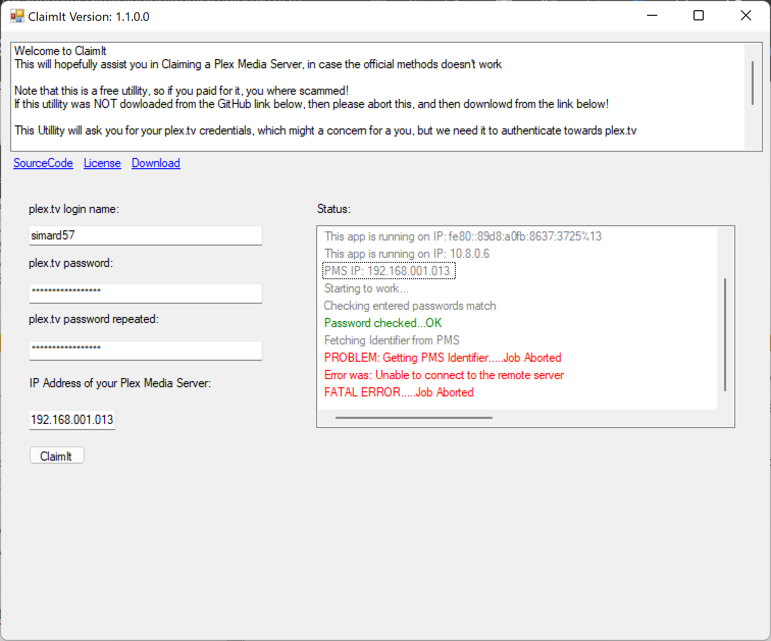 I tried downloading and running the ClaimIt script on the LAN. The results are in the attached image.