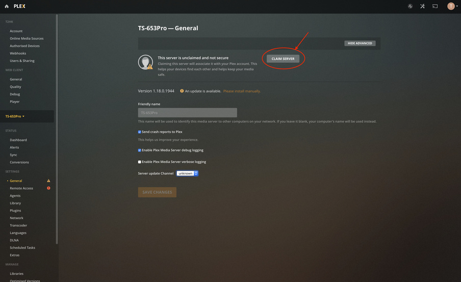 After performing a fresh install of my Plex server on the QNAP device using the latest release (1.18.0.1944) I can’t claim my server.