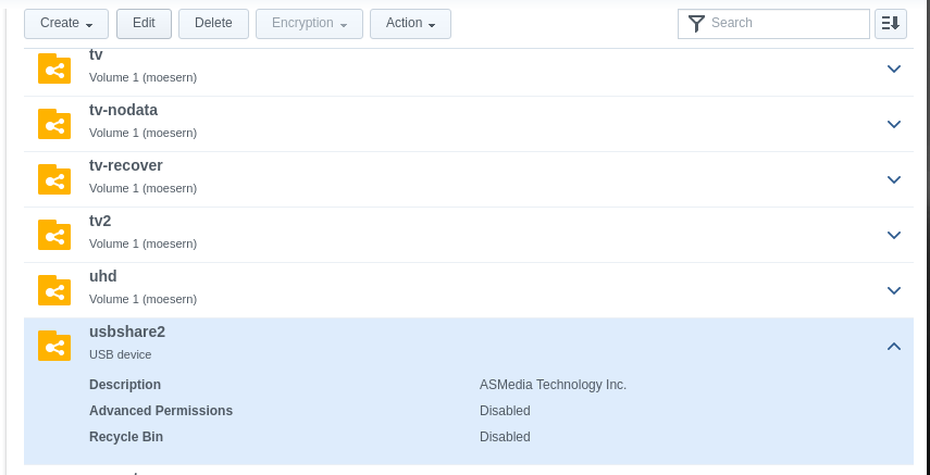 The USB shares are listed under shared folders and under permissions the Read/Write box for plex is checked