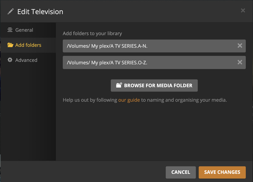 Here’s a section of the server log just before and after two successive attempts to “SAVE CHANGES” with the modified folder list. The network share was mounted and accessible at that time.
