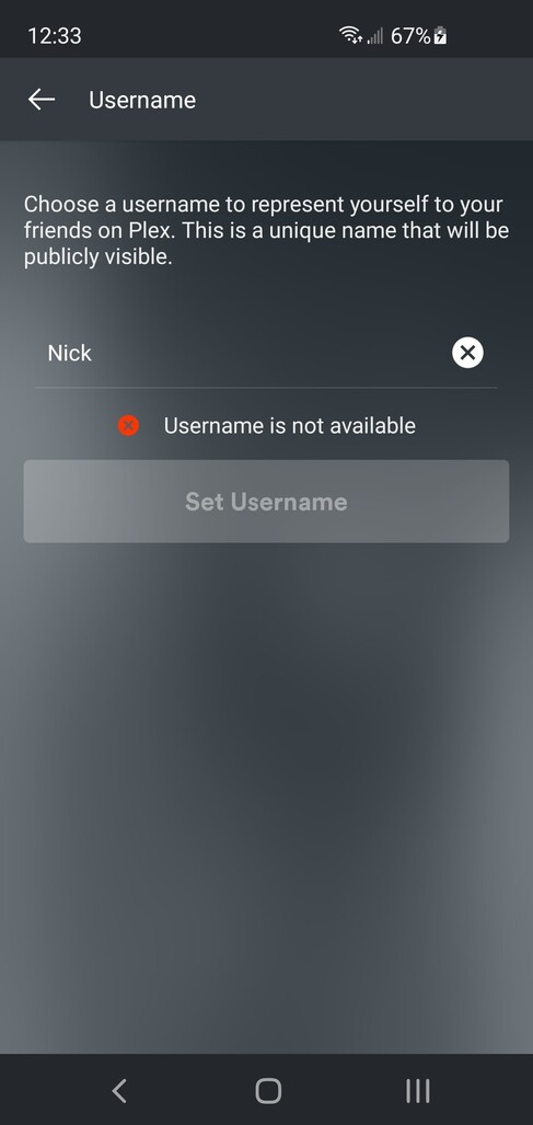 When I try to set my desired username Plex will not allow it for some reason… Anyone have any ideas here? Its a small nitpick. But it would be nice to be able to use my actual name.
