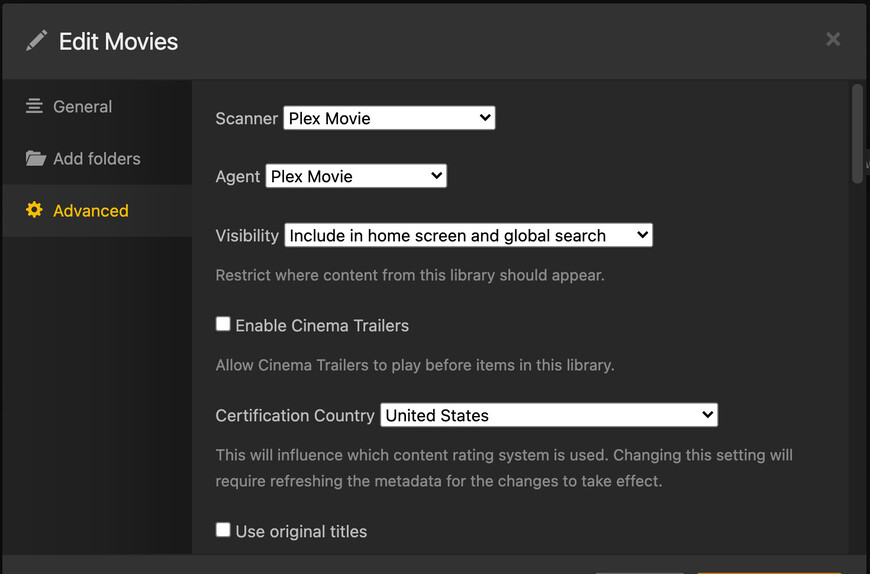 I have a few issues (I think). The main one being that only a scant few of the actor’s images appear under the cast in movies, most do not. I’ll use Tom Hanks as an example. Tom Hanks’ image doesn’t appear on the cast listing for any movie with Tom Hanks (the 'Burbs is a good example). The other issue is that if I try to choose ‘The Movie Database’ as my ‘Agent’ under ‘Advanced’. I get a red alert telling me that ‘Library Upgrade Required’. I get the modal pop-up window and consent. Nothing really seems to happen other than the server seems to go through the motions. But the settings always default back to ‘Plex Movie’ for both the ‘Scanner’ and the ‘Agent’.