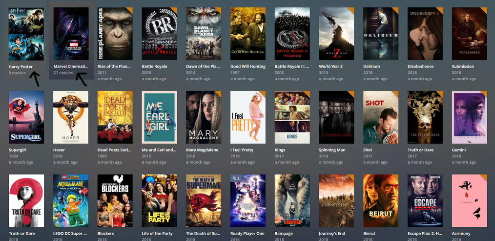 - hide movies which are in collections → displays the collection item; you’ll need to “enter” the collection to see its content