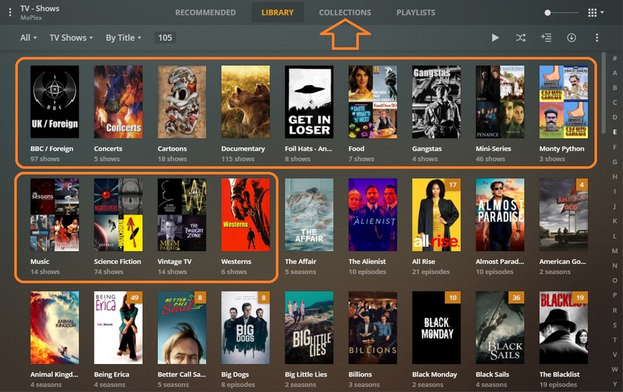 But you only see this multi-library view of collections if you access Collections from a Movie library. The Collections tab only appears in Movie libraries.