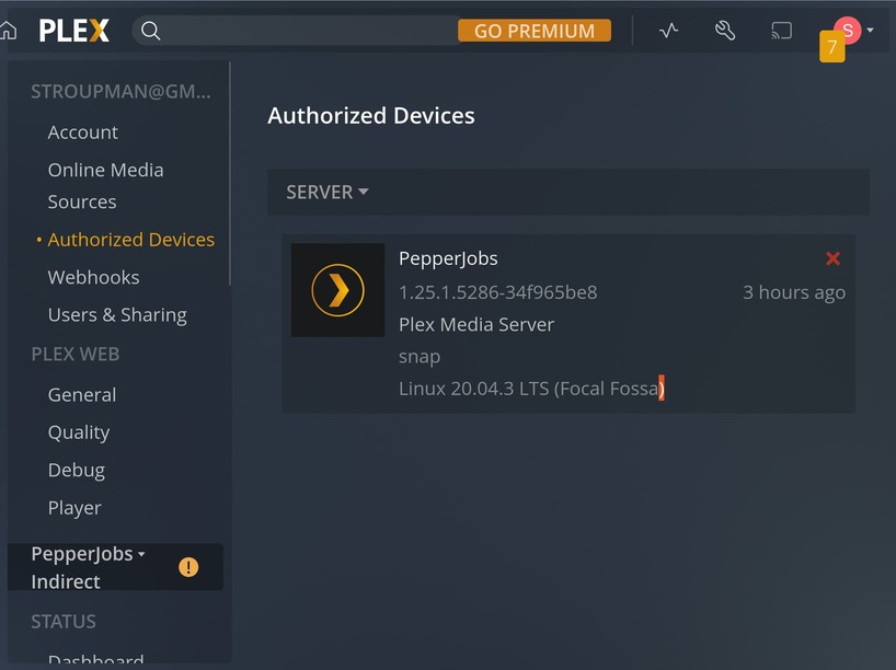 Also, notice it says “Go Premium” at the top. Pretty sure it is not picking up your Plex Pass.