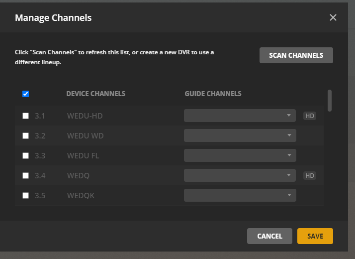 - When I delete /re-add the Hauppauge device from Plex, the process doesn’t scan for new channels, it just comes up with the list it always had from first installation. If I try to rescan, it just sits with a clock on 12.00 and says waiting to start scanning channels. The scan never completes.