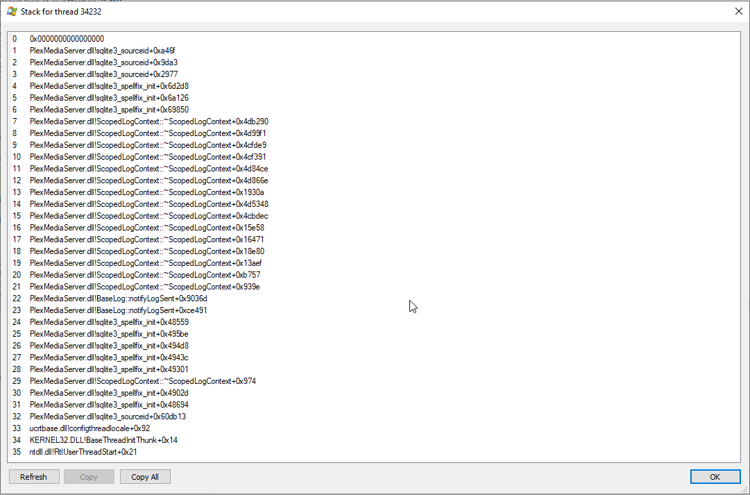 If it helps for me these are the three threads under the Plex.exe process that cause the high CPU. I’ve also attached a stack trace for one of them.