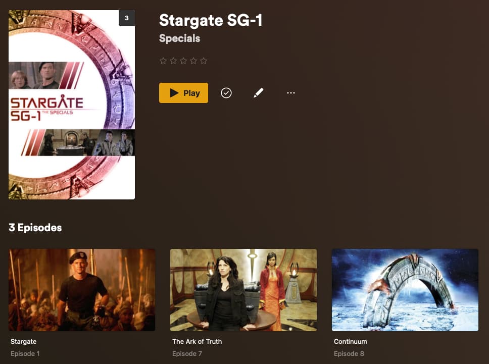 Only issue with the playlist is it does not allow for adding movies, as the original stargate movie and stargate origins is considered a movie and not tv show, plex doesnt understand what it is and the only workaround is to move them to the tv library and manually edit the data to trick it into accepting it, but then there is no artwork of any kind because it’s not a tv show