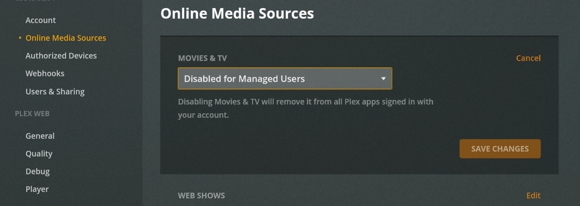 The Plex Support page for VOD (Video On Demand) indicates that on my “Online Media Sources” page I should find the Option for “Movies & TV” but tht choice is NOT listed.