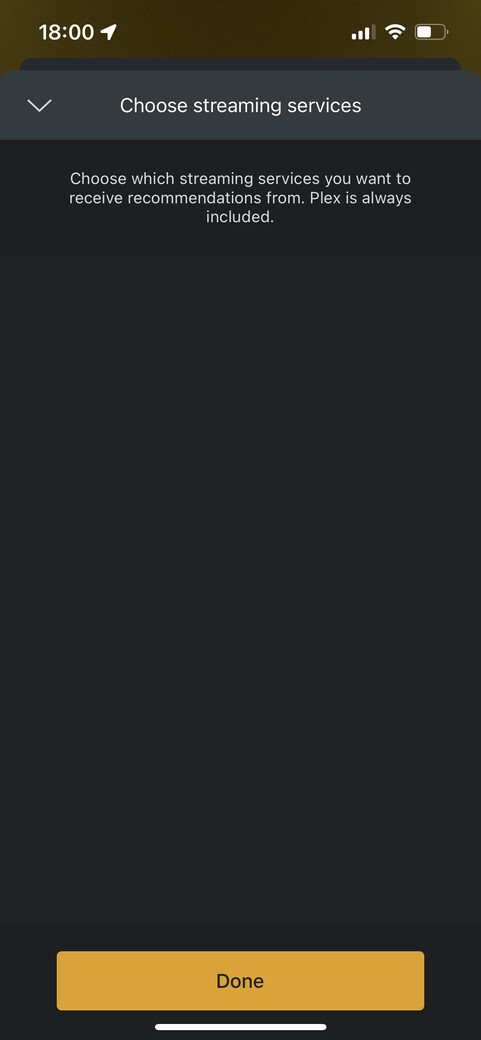 As per post title, the discover page seems to be working ok, showing trending stuff, trailers etc. If I select the ‘select streaming services’ button, a screen opens with a done button and some help text referencing a menu in the left. There is no menu on the left. No list, no entries to select.
