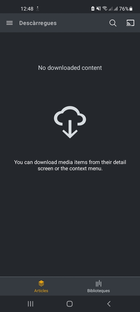 afterwards i turned the server back on, and i went into the downloads section on the phone, going from Items to Library, playing a song, and then going back to articles again. repeated the process a few times as indicated.
