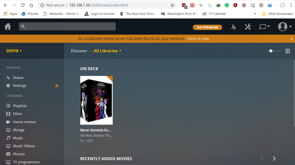 If I try logging into my DS918+ Plex server it tells me that there is an unclaimed server and asks me to claim it - which i try to now avail.