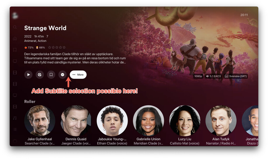 Today you need to (if you start at the Play button) press like 8 button presses to be able to pick a subtitle in the Apple TV-version of the player. In the iOS/iPadOS version it’s much more convenient and on the Web it’s even better.