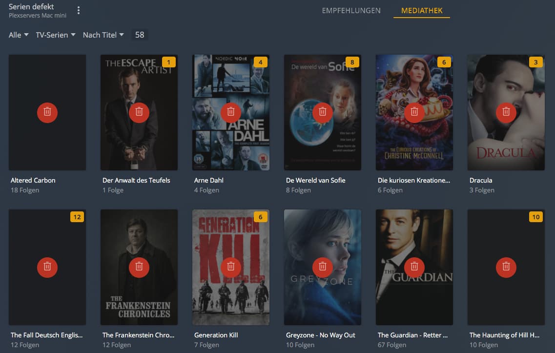 Ich habe eine Mediathek (Serien) die sich nicht löschen lässt, auch der Papierkorb lässt sich nicht leeren. Ich habe einen anderen Medien-Ordner hinzugefügt und den alten gelöscht, auch das hat nichts geholfen.
