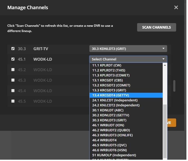 As was requested by @kamererhouse can you provide a screenshot? Can you also verify that you can actually view live tv on the channels you are saying you can’t save. Simply seeing them in the list does not indicate that they can be viewed and actually have a signal.