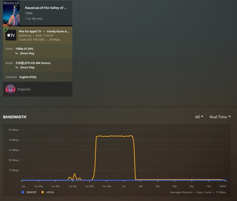 In my previous post with the logfiles, I noted that the buffering around 90Mb/sec lasted for 26 seconds. This is the point in the Plex clientās logs that notates that as well. Iām pointing this out specifically because after this moment, PMS is only sending out 1-2Mb/sec of the video stream to the Apple TV. THIS is the actual issue, in my opinion.