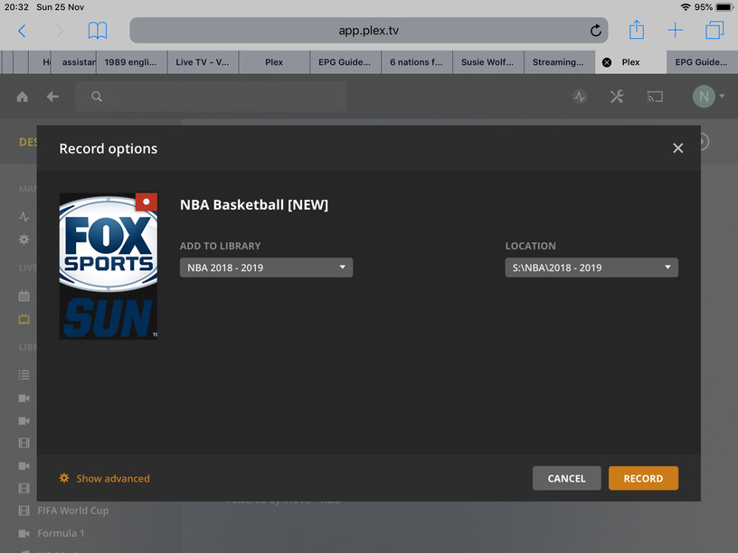 Here is an example of SD, Bundesliga football game (All matches are shown as the same in Plex)