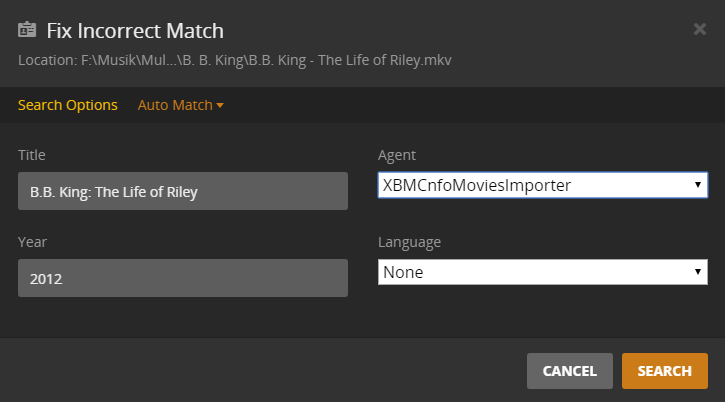 (The .nfo importer in this screenshot is only an example. You can also pick Plex Move or TheMovieDatabase instead. TMDB is better suited for “video” content. Plex Movie only knows “cinema movies”.)