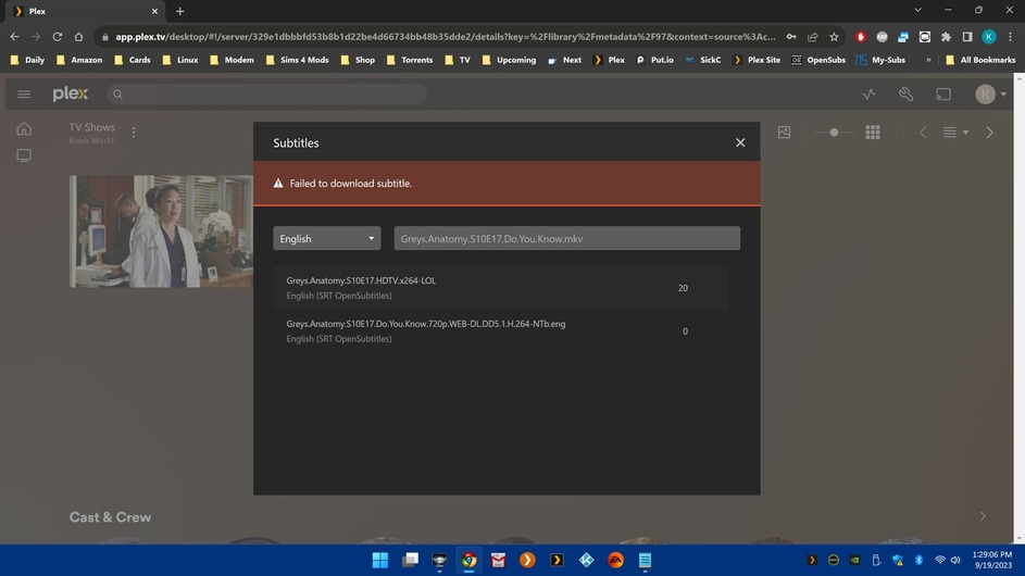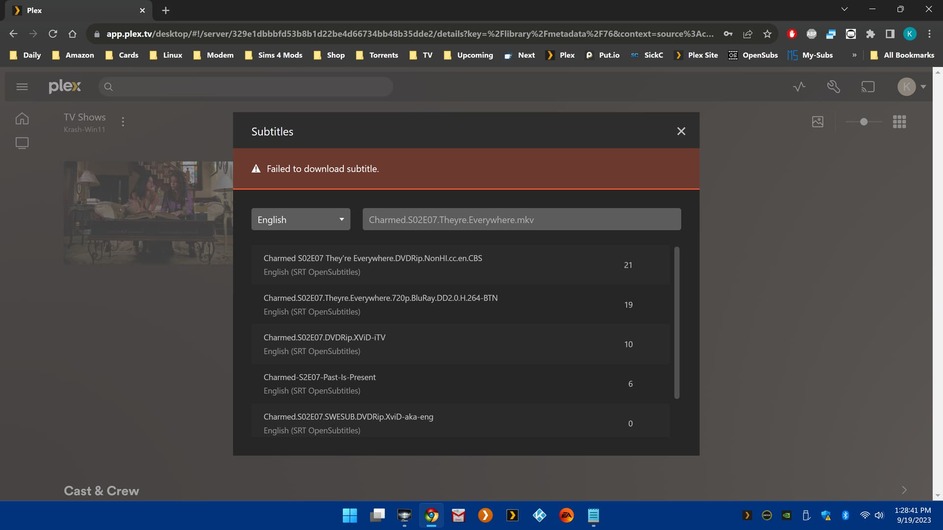 And the weirdest, most frustrating part is, if I uncheck opensubtitles and leave it blank, I still get the search option and still get the Failed to download error. I even tried a different browser because I thought maybe it was Chrome but even with firefox I get the same results. No matter what I uncheck it gives me the same results.