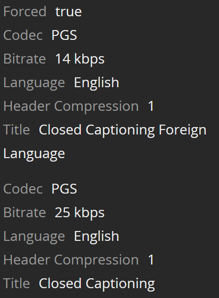 Last thing is, when I edit tracks with MKVToolNix, things that I select Force or Default for, don’t automatically get selected when being added to Plex even though it understands one track is forced. I have to select the track myself (which can get pretty annoying for subtitles for tv episodes).