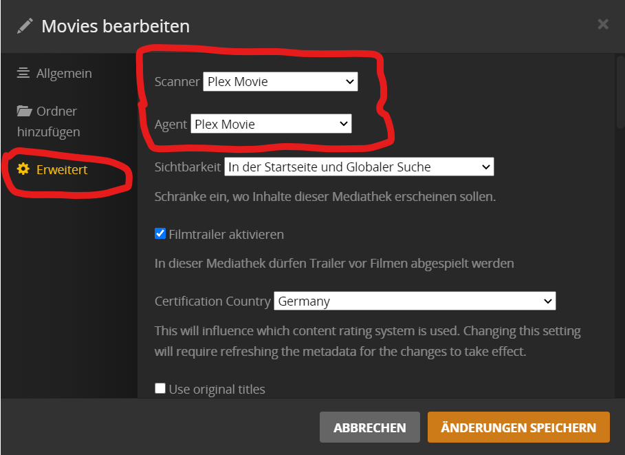 - Welcher Agent wird aufgelistet, wenn du diese Mediathek bearbeitest und auf den ‘Erweitert’ Reiter gehst?