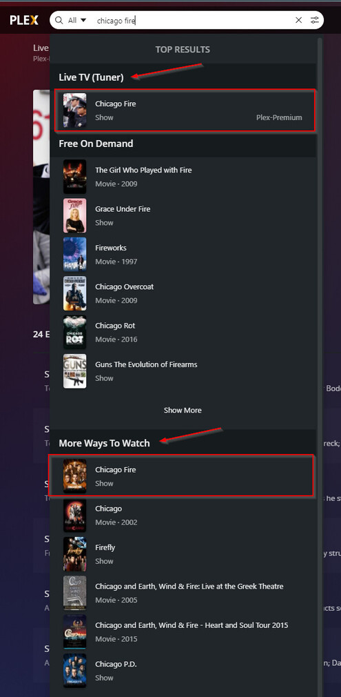 @plexsupport discovery looks great, but any idea why my live tv (tuner) is missing from the options “watch from these locations”?, in this example, we can see “Chicago Fire” showing as available only on Hulu, Peacock, fuboTV but it doesn’t show my Live TV tuner channel Fox 29, however when I search for the show across all see it listed, separately in the Live TV (Tuner), if this is not an issue could you please integrate the Live TV (Tuner) into Discover?