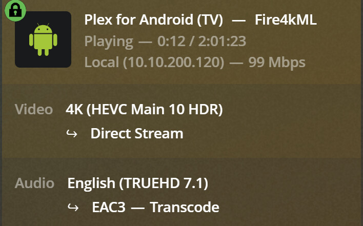 With that said the video stream is listed as direct/not being transcoded when I view it on the dashboard in Plex. It is only the audio stream that sometimes will be unsupported.