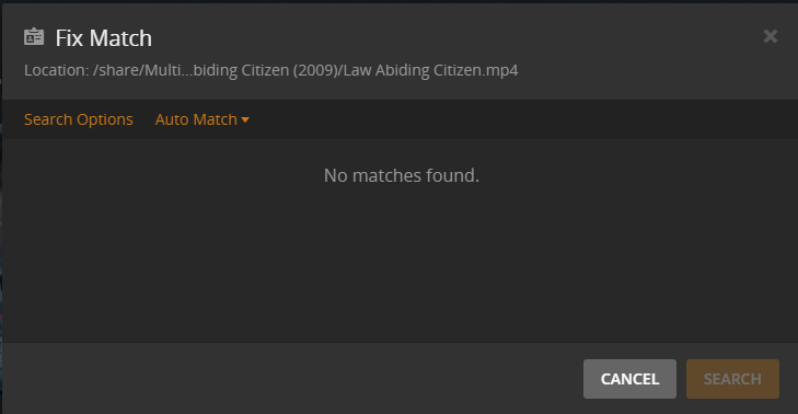 When I try to match a movie it doesnt find anything and when I try to do a fix match it says it cant no matches found.