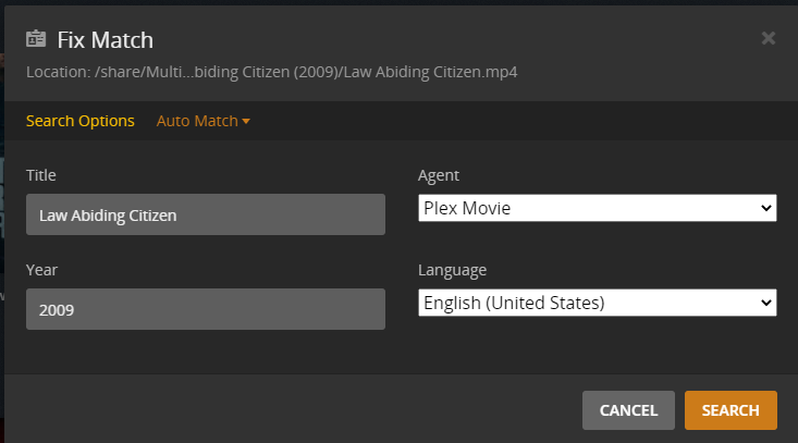 Anyhow, the fix match problem is most likely caused by not being able to connect to the plex metadata servers.