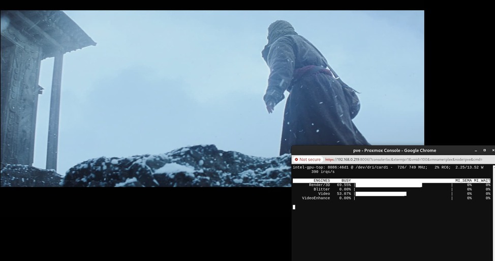 Server Version#: Version 1.41.0.8930 Player Version#: Plex Web Version 4.136.1, Plex for Mac Version 1.100.1.221-94aa83fb Sample File:Sony Swordsmith 4K HDR Demo System: ASRock NUC-Box – Intel Core Ultra 125H OS: Proxmox 8.2, running Kernel 6.8.12-1-pve Plex Context: Running in an LXC container based on Ubuntu 22.04.04 with iGPU passed through.