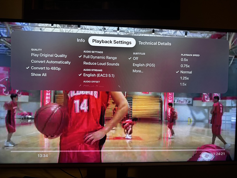 Aug 30, 2024 09:20:32.356 [140191830387512] DEBUG - Streaming Resource: Reached Decision id=23647 codes=(General=1001,Direct play not available; Conversion OK. Direct Play=3000,App cannot direct play this item. Direct play is disabled. Transcode=1001,Direct play not available; Conversion OK.) media=(id=51981 part=(id=71750 decision=transcode container=mp4 protocol=dash streams=(Video=(id=221908 decision=transcode bitrate=11205 encoder=libx264 width=1920 height=1080) Audio=(id=221909 decision=transcode bitrate=151 encoder=aac channels=2 rate=48000) Subtitle=(id=221914 decision=transcode bitrate=2147483647 encoder=ass languageCode=deu location=sidecar))))
