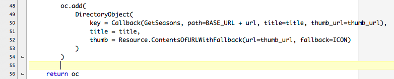 You both have that code block one tab too far indented, it should be at the same tab level as the “return oc” line. The way you guys have it it’s trying to add an item for Properly Brothers for every single show it picks up on the full episodes page on their website.