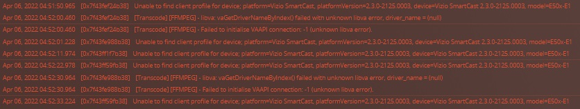 Apr 06, 2022 04:25:54.567 [0x7f443759eb38] DEBUG - [JobRunner] Job running: FFMPEG_EXTERNAL_LIBS='/var/lib/plexmediaserver/Library/Application\ Support/Plex\ Media\ Server/Codecs/be22e26-3961-linux-x86_64/' X_PLEX_TOKEN='xxxxxxxxxxxxxxxxxxxx' '/usr/lib/plexmediaserver/Plex Media Scanner' '--analyze' '--item' '81526,92278,335219,19745,202855,101822,88259,68375,121764,112746' '--log-file-suffix' ' Analysis'