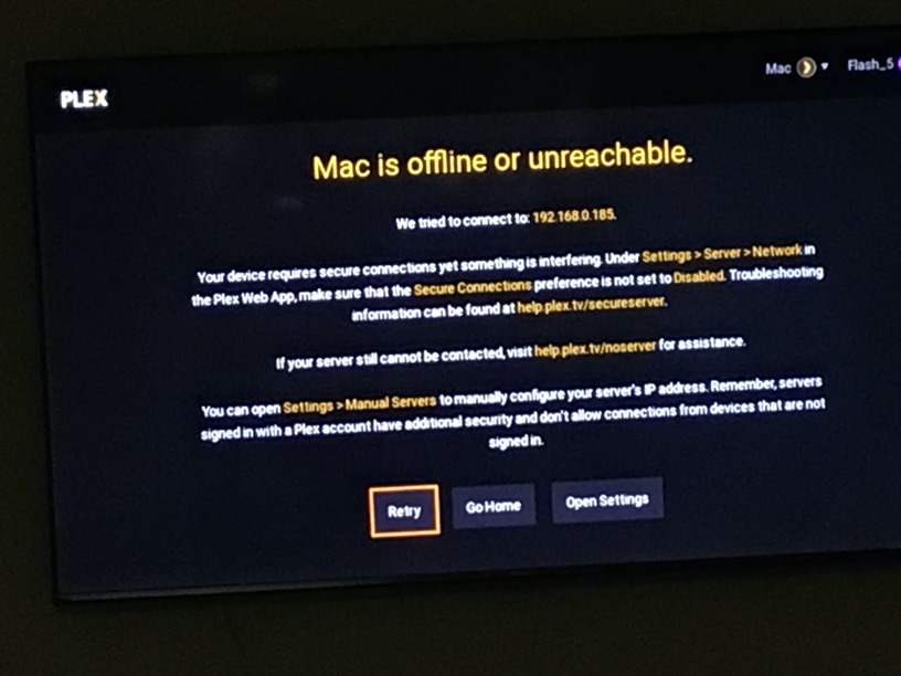after months of hassle free Plex use on my newest Hisense TV running Plex app on VIDAA 3.13.14 recently the full screen error message ’ Mac’ (Server) is unreachable?