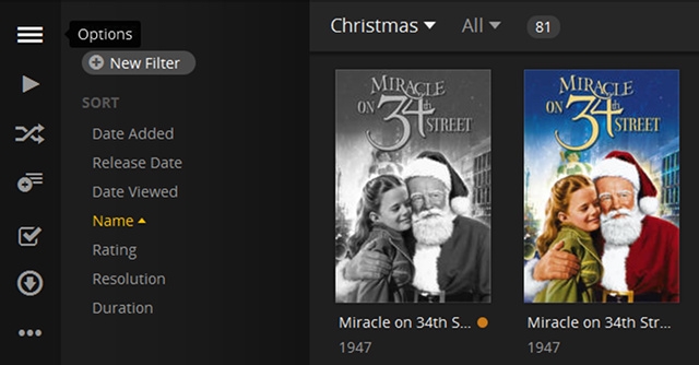 Two versions of “Miracle on 34th Street”. One is the original black and white, one is the colorized version. They are different resolutions. They are both in the same folder.
