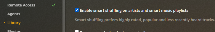 Ok, so I’ve got a playlist “All Music” which contains, well, all the music in the library. I select that playlist and tell it to shuffle. Well, its doing the same thing that the Radio was doing. It plays highly rated tracks consecutively and I’m hearing songs and artists I’ve heard way too frequently already since PlexAmp 3.x came out.